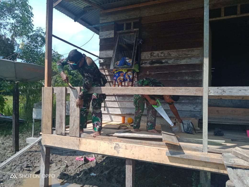 TANJUNG SELOR, IInibalikpapan.com – Bentuk kepedulian terhadap warga binaan, (Satgas) TNI Manunggal Membangun Desa (TMMD) Kodim 0903/Tsr yang saat ini sudah memasuki penggarapan menyentuh sasaran Renovasi Rumah Tidak Layak Huni (RTLH) dalam membedah rumah warga tidak mampu seperti rumah bapak Jabir 58 tahun di Desa Teras Baru Kecamatan Tanjung Palas Kabupaten Bulungan, Kamis (4/3/2021).