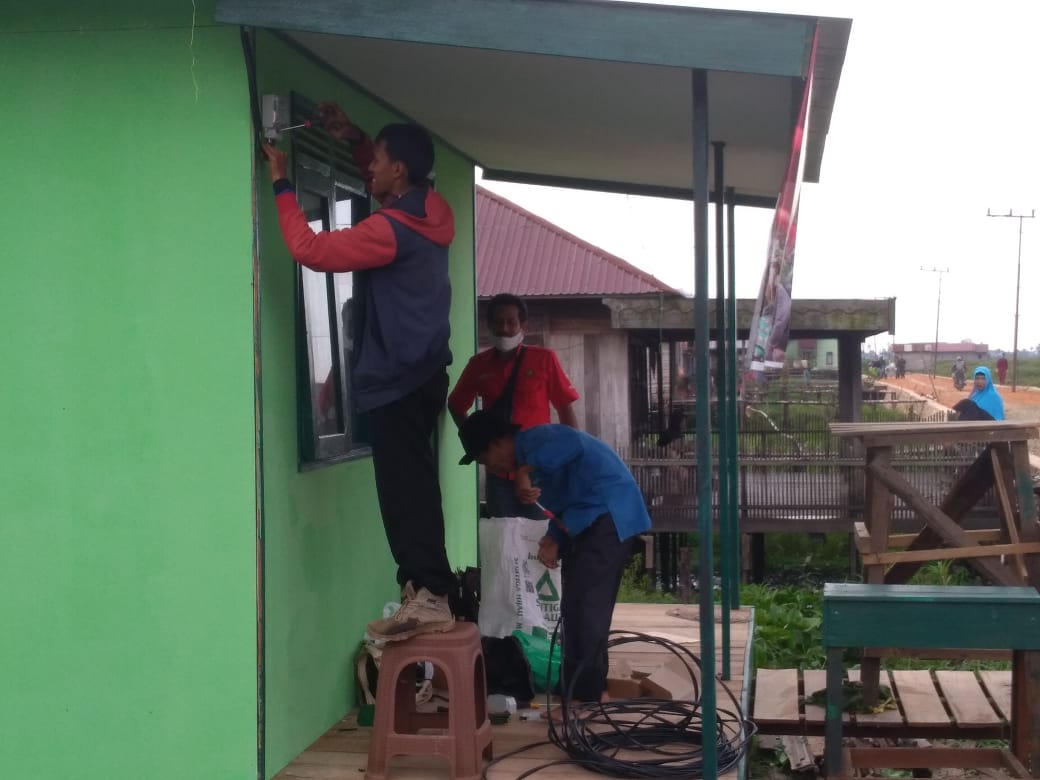 Saat ini sudah hampir rampung sudah memasuki tahap pemasangan KWH listrik dirumah Ibu Marna dan Ibu Salasiah di Desa Sarang Burung, Kecamatan Danau Panggang, Rabu (14/10/2020).