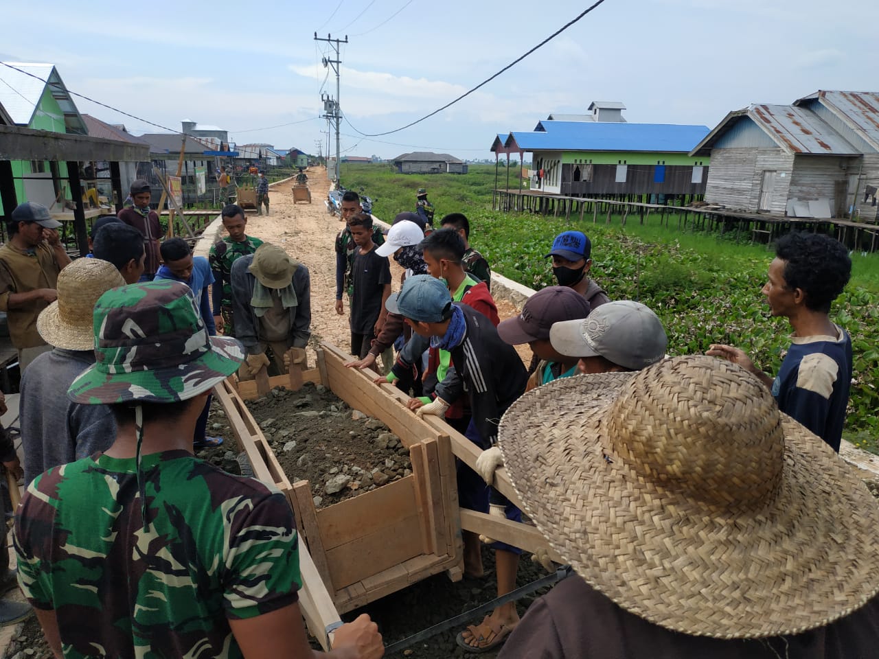 AMUNTAI, Inibalikpapan.com – Program Tentara Manunggal Membangun Desa (TMMD) Kodim 1001/Amuntai pembangunan jalan memasuki hari ke 19 desa Sarang Burung di Kecamatan Danau Panggang, Kabupaten Hulu Sungai Utara, sudah mencapai 80% pada Sabtu (10/10/20).