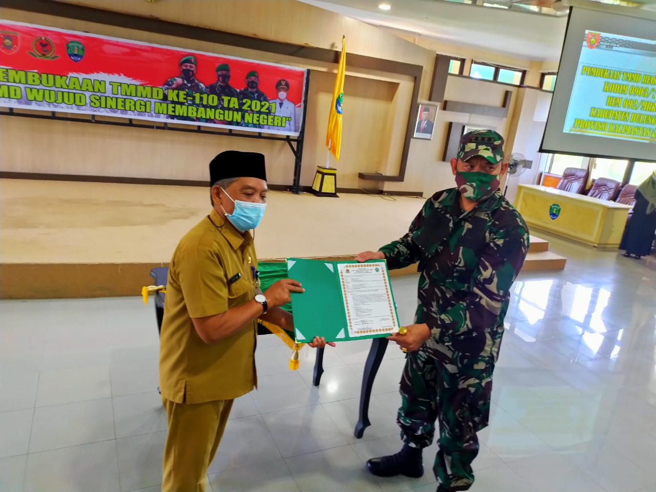 TANJUNG SELOR, Inibalikpapan.com – Pembukaan TNI Manunggal Membangun Desa (TMMD) Ke 110 Kodim 0903/Tsr Kabupaten Bulungan Tahun 2021 dengan tema “TNI Manunggal Membangun Desa (TMMD) Wujud Sinergi Membangun Negeri bertempat di Aula Kantor Bupati Bulungan Jalan Jelarai Raya Kec. Tanjung Selor, Kabupaten Bulungan Prov Kaltara, Selasa (02/03/2021).