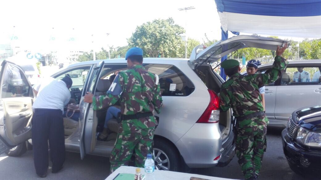 Pemeriksaan dilakukan oleh aparat gabungan TNI Polri dan pengamanan dalam dengan cara melakukan pemeriksaan bagasi bagian bawah kendaraan.