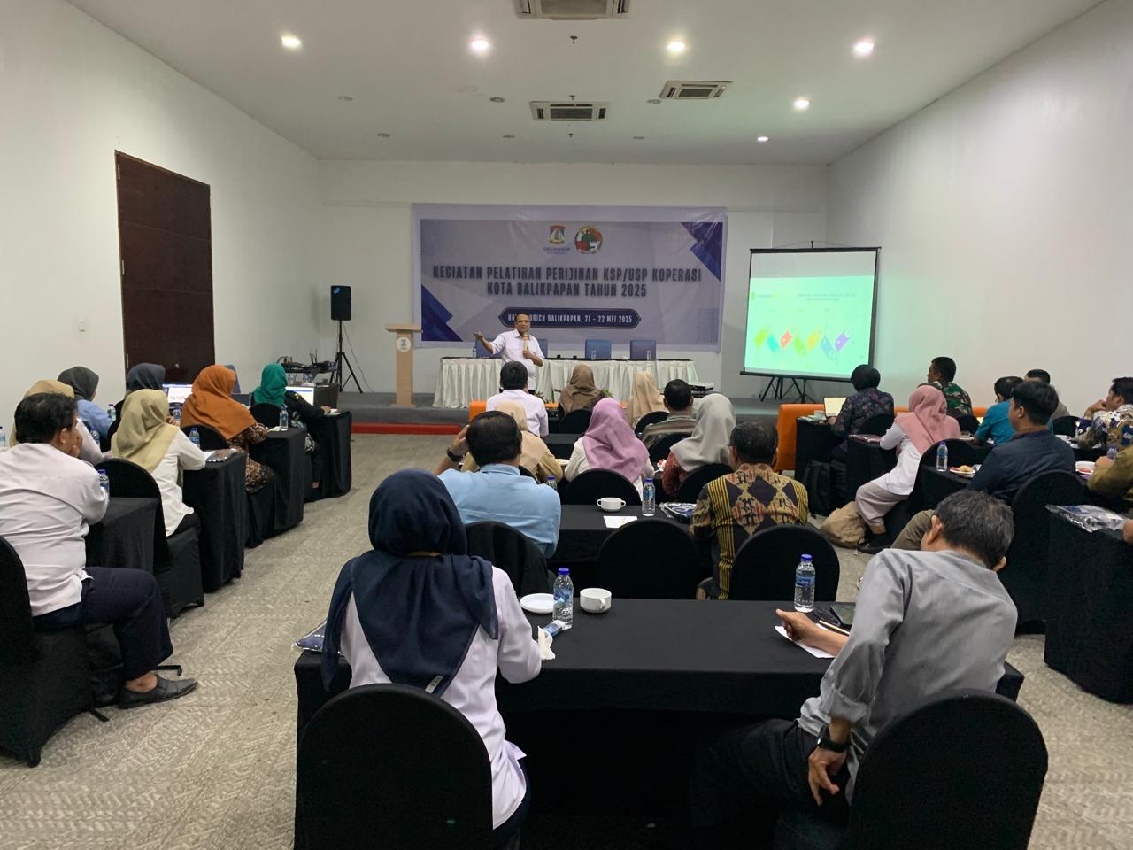 BALIKPAPAN, inibalikpapan.com — Dinas Koperasi, Usaha Mikro, Kecil, Menengah, dan Perindustrian (DKUMPKP) Balikpapan menggelar pelatihan perizinan usaha bagi koperasi simpan pinjam dan unit simpan pinjam (KSP/USP), Rabu, 21 Mei 2025, di Hotel Zurich Balikpapan. Para pengelola koperasi dari seluruh wilayah kota hadir dalam pelatihan.
