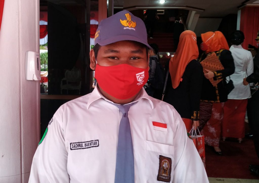 Penyerahan dilakukan secara bergantian oleh wali kota Rizal Effendi, Wakil Wali kota Rahmad Mas’ud, Wakil Ketua DPRD Thohari Aziz kepada siswa penerima yang berhak usai upacara peringatan HUT Kemerdekaan RI 17 Agustus 2020.