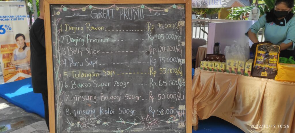 Harga yang ditawarkan relatif lebih murah dibandingkan di pasar. Kegiatan pasar murah berlangsung hingga 16 Desember 2022. Diantaranya untuk minyak sayur dijual Rp13 ribu per liter. Telur sepiring Rp55 ribu yang sekarang ini mencapai Rp60-65 ribu. dan bawang putih Rp25 ribu.