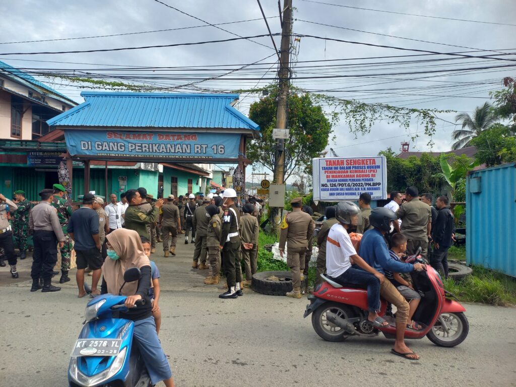 Tampak ratusan petugas gabungan yang terdiri dari Satpol PP, TNI-Polri, DKK Balikpapan, Bagian Hukum, PN Balikpapan, dan BPN mengikuti jalannya tahapan-tahapan sita eksekusi yang sempat menjadi tontonan warga sekitar.