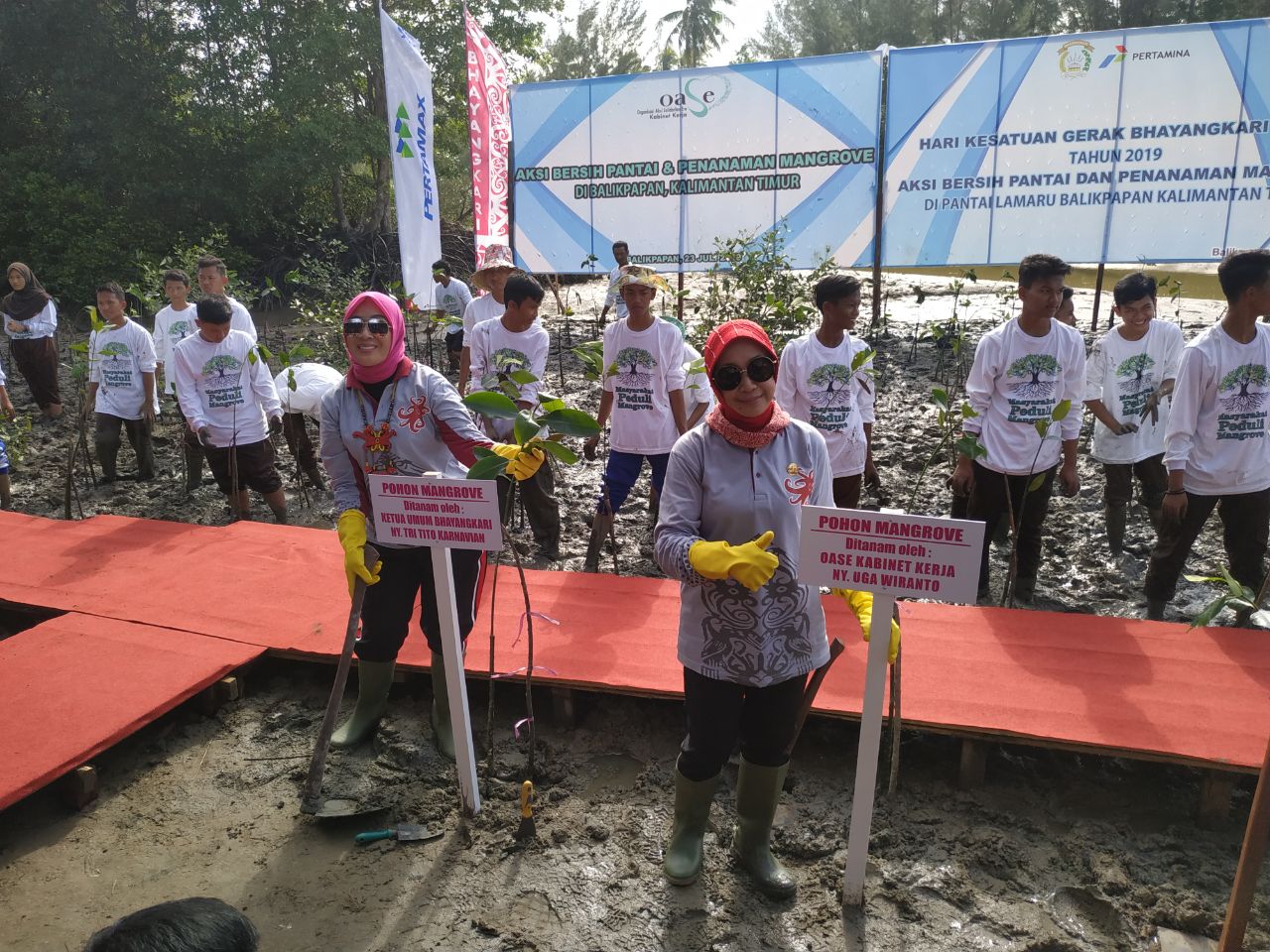 “Penanaman mangrove merupakan bagian dari pencegahan. Jadi beliau (ibu negara) sangat peduli sekali terhadap program ini,” katanya.