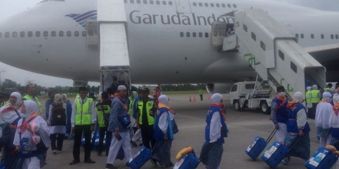BALIKPAPAN, Inibalikpapan.com – Calon jemaah haji Kloter I Embarkasi Balikpapan telah diterbangkan menggunakan pesawat Garuda tipe Boeing 747-400 dengan nomer penerbangan GA 4101 registrasi EC-MRM menuju Madinah tepat pukul 12.02 Wita (Local Time) atau 04.25 Coordinate Universal Time (UTC).