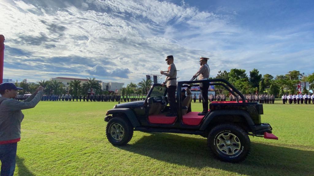 Kapolda Kaltim Irjen Pol Imam Sugianto memimpin langsung apel gelar pasukan pengamanan Idul Fitri di lapangan SPN, Brimob, Balikpapan, Jumat sore (22/4/2022).