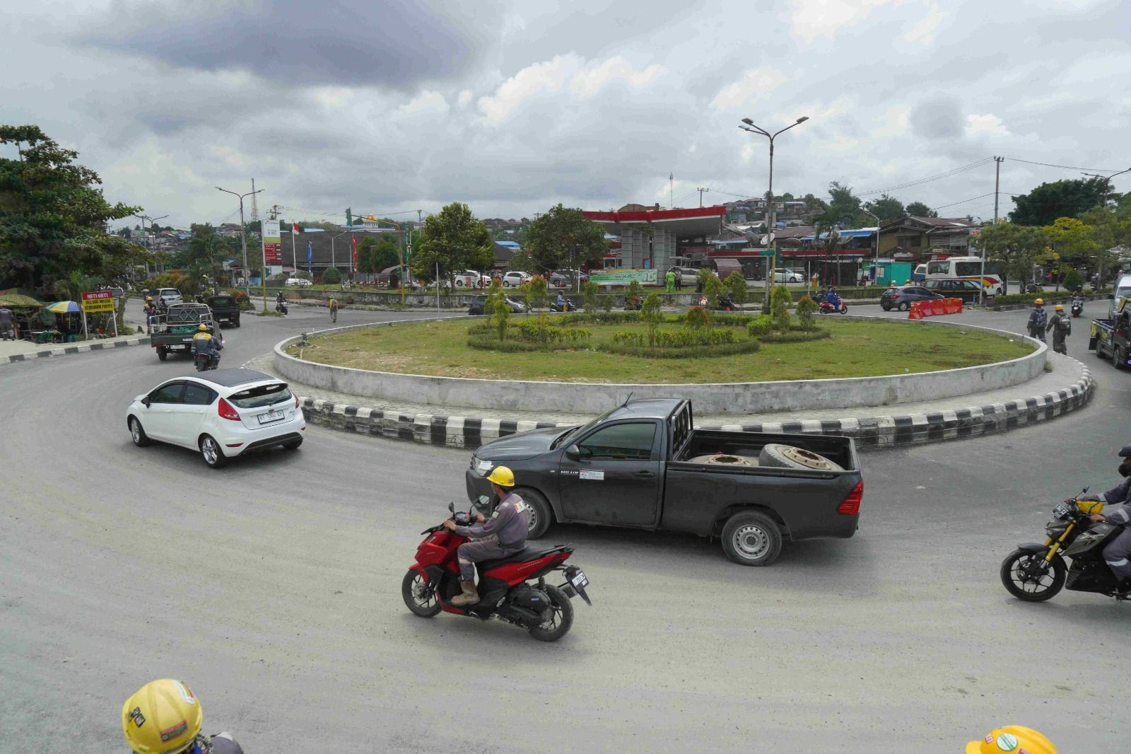 Perbaikkan tersebut, yakni menyelesaikan penanganan jangka pendek dengan melakukan pelapisan aspal. Sehingga saat ini sudah tidak terlihat lagi lubang di sisi sekitar bundaran.