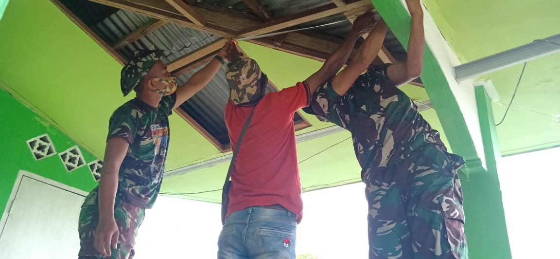 Kendala cuaca yang tidak menentu juga menghambat pengerjaan sasaran ini. “Tiba-tiba hujan jadi menghambat kami untuk segera mengerjakan atap dan plafon ini, karena itu kami di sini memanfaatkan tempat yang ada untuk menyelesaikannya, karean target kita hari ini selesai untuk plafon. Besok kita lanjutkan di titik lain yang ada di masjid ini,” penyampaian Kapten Inf Pakih selaku Pasiter Kodim 0907/Trk.