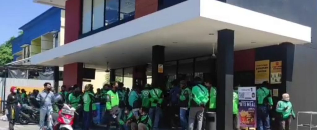 Salah satu gerai McD yakni kawasan MT Haryono, Damai Baru, Balikpapan Selatan ini pun ramai diserbu para ojek online yang menerima pesanan order, akibat dari membeludaknya orderan, membuat para ojol berkerumun untuk mengantre paket tersebut.