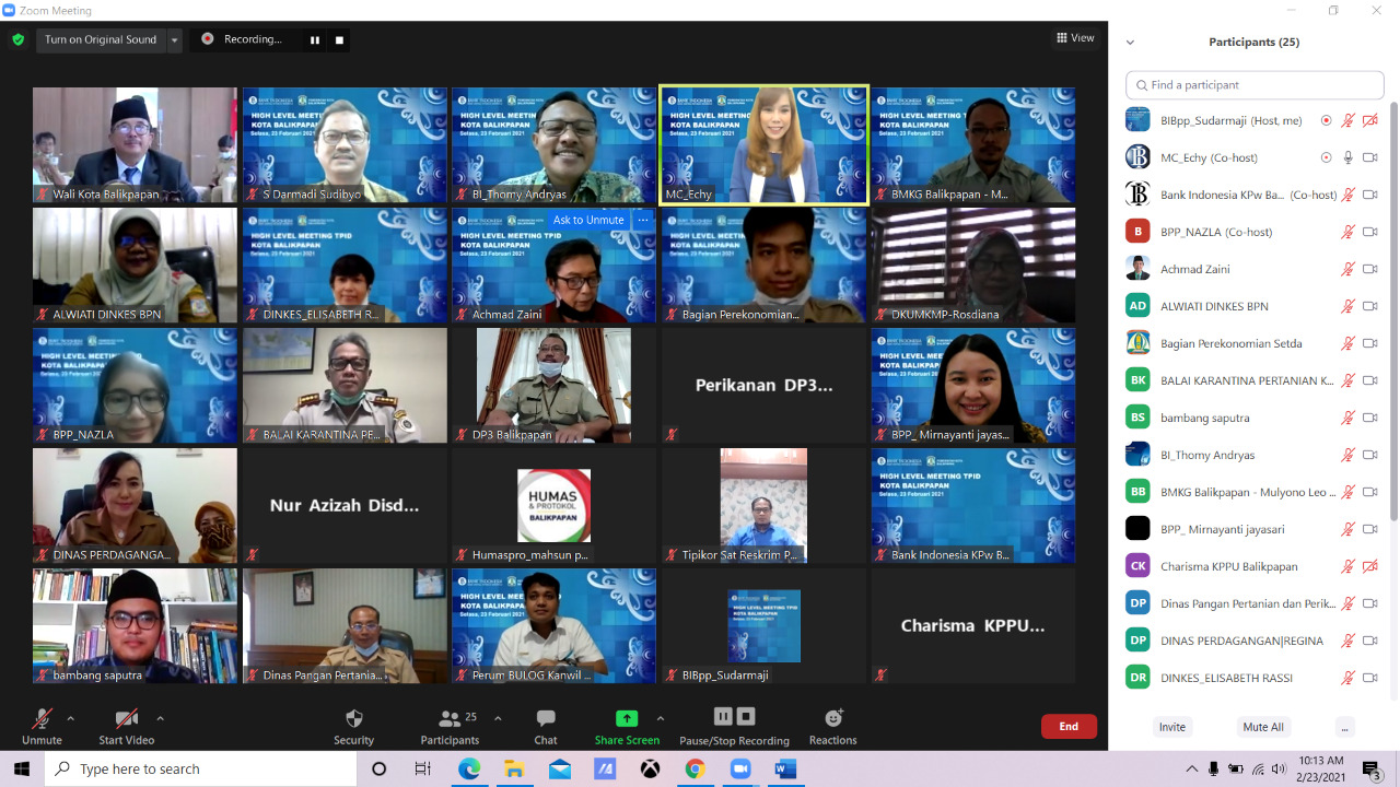 BALIKPAPAN, Inibalikpapan.com – Tim Pengendalian Inflasi Kota Balikpapan menggelar high level meeting (HLM) secara virtual. Tema yang diangkat, Evaluasi Pencapaian Inflasi 2020 dan Penyusunan Langkah Strategis Pengendalian Inflasi 2021.