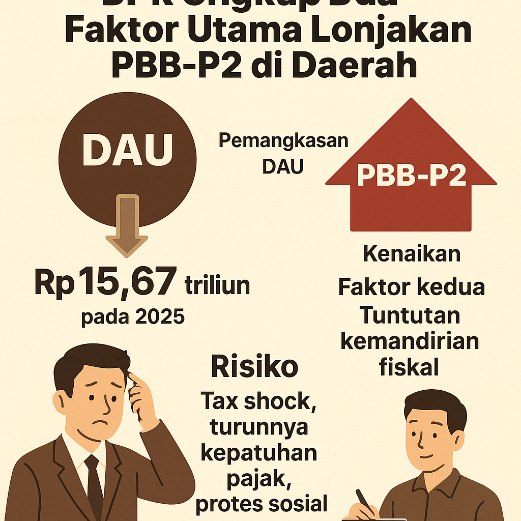 “DAU adalah tulang punggung belanja daerah. Begitu dipangkas, pilihan paling mudah bagi kepala daerah adalah mengerek PBB-P2,” jelasnya.