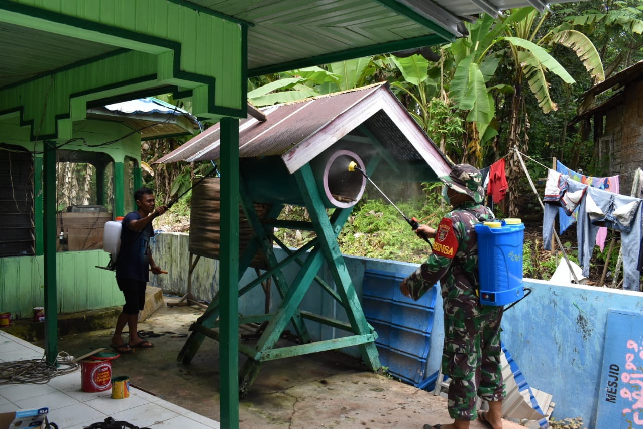 Danramil Padang Batung Kapten Inf. Eryck faisal mengatakan bahwa selain melakukan sosialisasi pencegahan dari rumah ke rumah, kita laksanakan juga penyemprotan dengan disinfektan di dua sasaran TMMD, dua sasaran tersebut yakni masjid Nurul Huda dan mushola Darul Huda,” bebernya.