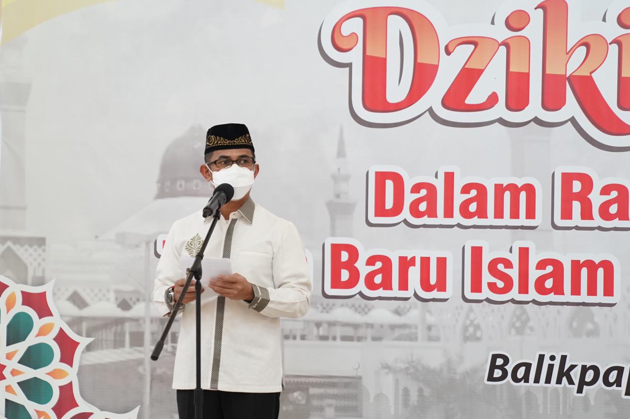 BALIKPAPAN, Inibalikpapan.com — Wali Kota Balikpapan- Rahmad Masud mengajak agar warga Balikpapan mengambil hikmah dari semakin mewabahnya Covid-19. Hal itu diutarakannya dalam kegiatan Peringatan tahun baru Islam 1443 Hijriah/ 2021 M oleh jajaran pemerintah kota yang dilaksanakan di Masjid Madinatul Iman Balikpapan Islamic Center pada Senin petang (09/ 08/ 2021).