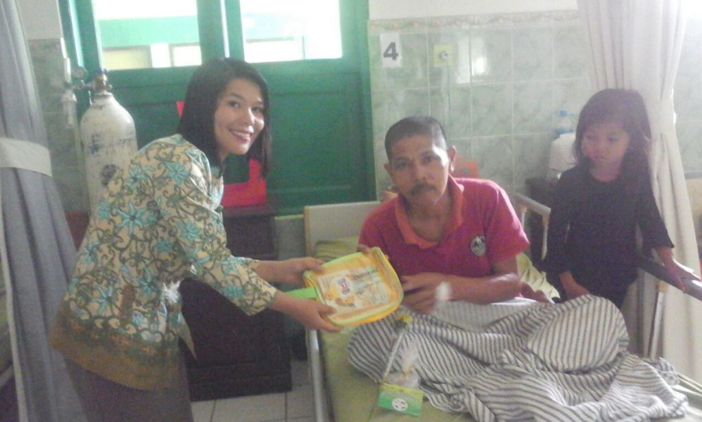 ramah sembari memberikan sekuntum bunga. “Hari ini hari gizi nasional Pak,” ujar salah seorang perawat kepada seorang pasien yang dirawat di ruang Yudha 1 seraya memberikan sekuntum bunga, kue dan satu bingkisan lagi.