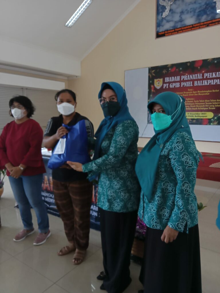 Pada pembagian bingkisan dilaksanakan di Gereja PNIEL Pelayaran, Kelurahan Prapatan, Senin (20/12/2021) hadir dalam kesempatan tersebut Ketua III TP PKK Kota Balikpapan, Yulianti Abdulloh bersama pengurus didampingi Camat Balikpapan Kota Rosin Suparlan.