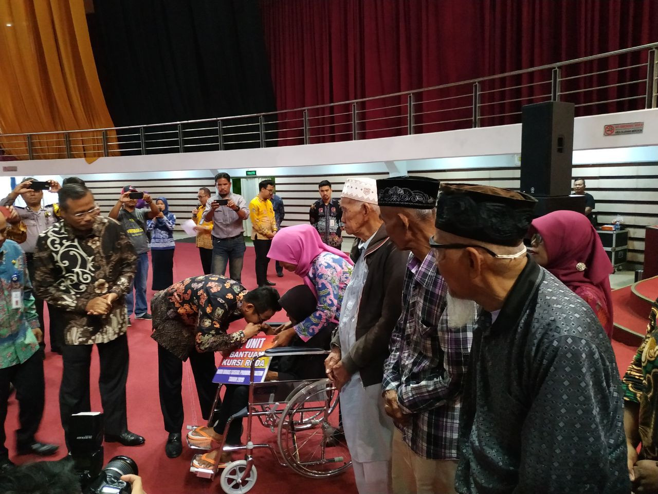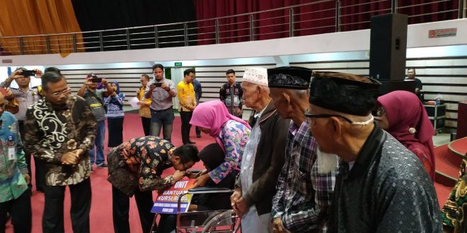 Bantuan yang diberikan berupa paket sembako 350 paket buah, 17 unit kursi roda dan Rp240 juta untuk 100 orang lansia dari Kementerian Sosial RI.