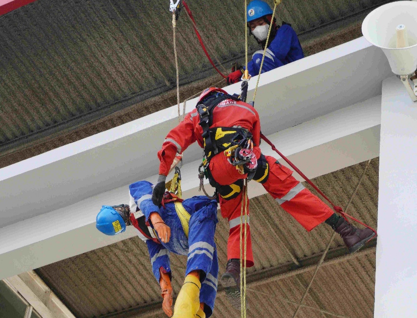 Pada kesempatan itu, tim pemadam RU Unit Balikpapan juga memperagakan penanganan kebakaran dengan menggunakan foam serta melakukan simulasi evakuasi pekerja yang terjatuh pada pekerjaan di ketinggian.