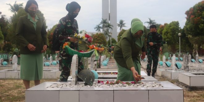 BALIKPAPAN, Inibalikpapan.com – Dalam rangka memperingati Hari Ulang Tahun (HUT) Persit Kartika Chandra Kirana (KCK) ke-75 tahun 2021, Persit KCK PD VI/Mulawarman melaksanakan ziarah rombongan di Taman Makam Pahlawan (TMP) Dharma Agung Balikpapan, Kamis (1/4/2021).
