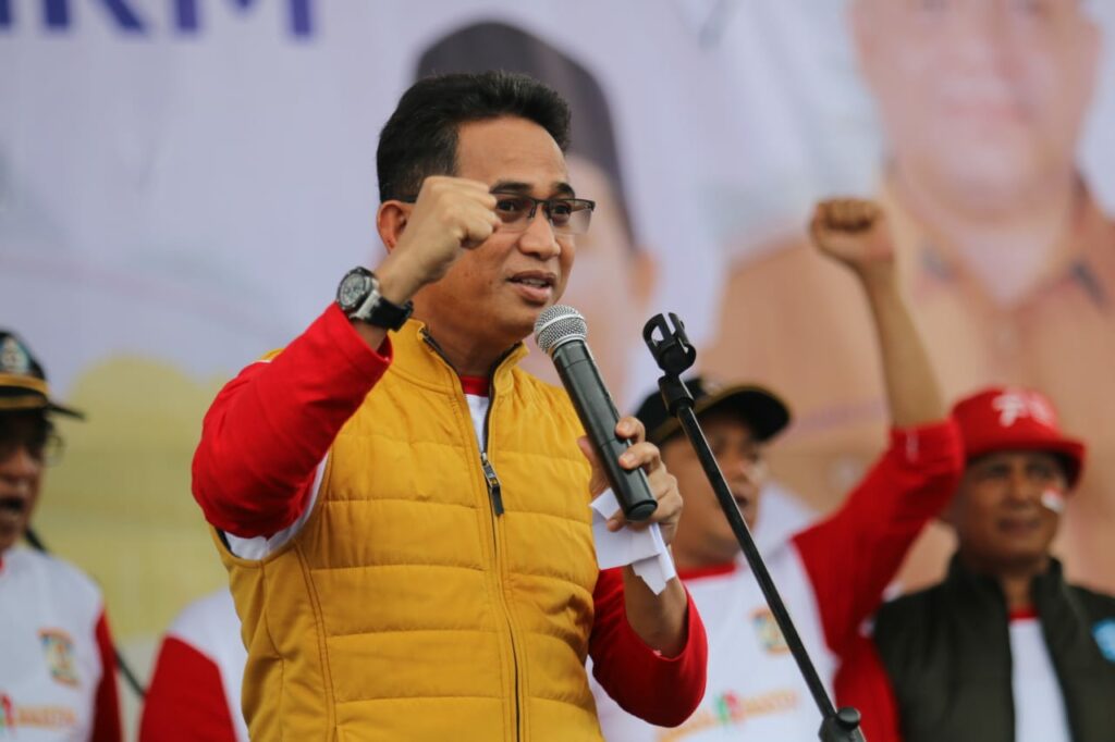 Sebelum penyerahan hadiah utama, Wali Kota Rahmad Mas’ud memberikan menyapa warga kelurahan Karang Rejo.