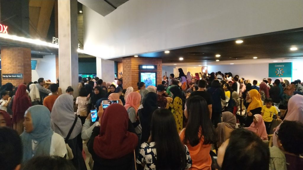 Usai pertemuan di taman Barneo Bay, penggemar Ria Ricis melanjutkan acara di pintu masuk bioskop CGV. Lagi-lagi, pintu masuk di bioskop ini dipenuhi penggemar setia yang paling banyak didominasi ABG.