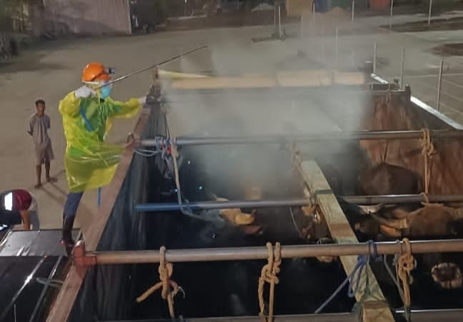 Penyemprotan desinsektisasi dilakukan di tempar keluar masuk, transit atau instalasi karantina hewan dan tempat Ttndakan karantina hewan. Diharapkan, dengan adanya pengetatan biosekuriti dapat mencegah masuknya PMK ke Kaltim.