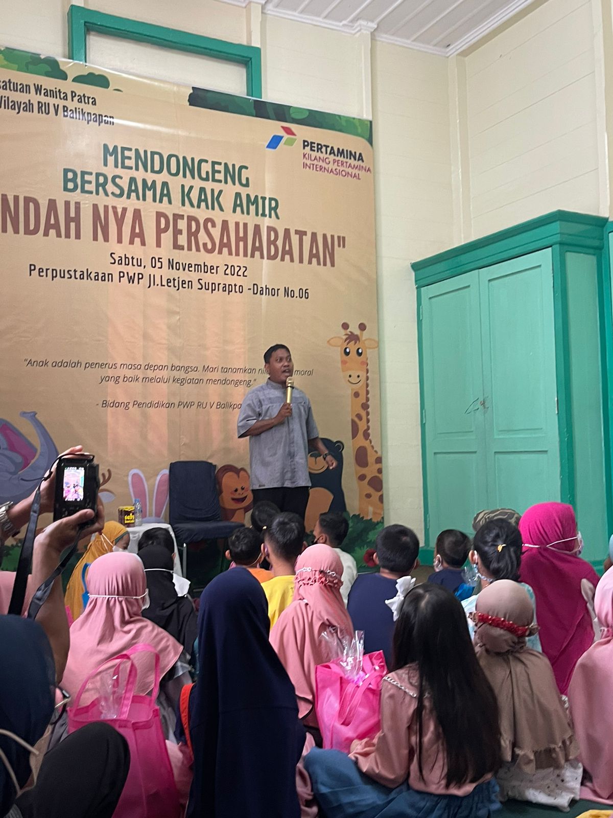 BALIKPAPAN,Inibalikpapan.com – Sebagai salah satu bentuk implementasi program bidang pendidikan, Ibu-Ibu yang tergabung dalam Persatuan Wanita Patra (PWP) Tingkat Wilayah RU Balikpapan, membuka kembali perpustakaan yang berlokasi di Jalan Dahor 6 Kelurahan Baru Ilir Kecamatan Balikpapan Barat. Pembukaan kembali ditandai dengan Kegiatan Mendongeng Bersama Kak Amir, Sabtu (5/11/2022).