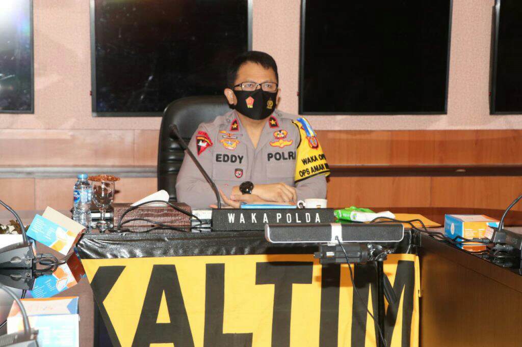 Dalam rangka membahas peringatan Hari Kemerdekaan ke 75, Wakapolda Kaltim Brigjen Pol. Drs. Eddy Sumitro Tambunan, M.Si., didampingi Dir Krimsus Polda Kaltim, Wakasat Brimob Polda Kaltim, Serta Pejabat Utama Polda Kaltim lainnya mengikuti video conference (Vicon) yang dipimpin oleh Jajaran Kemendagri, Rabu (29/7/2020).