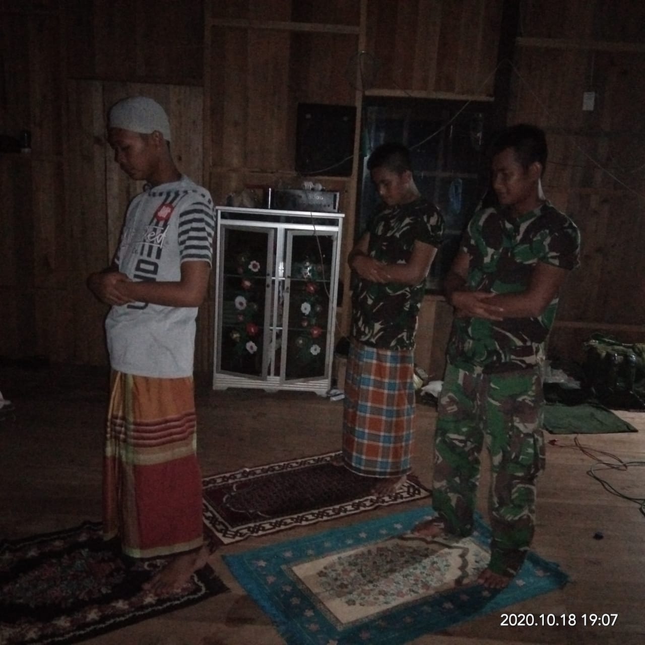 AMUNTAI, Inibalikpapan.com – Usai melaksanakan pekerjaan Fisik TMMD, Anggota Satgas TMMD ke 109 Kodim 1001/Amuntai tetap melaksanakan sholat Maghrib berjamaah bersama warga, Minggu malam (18/10/2020).