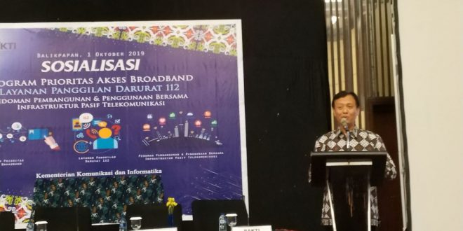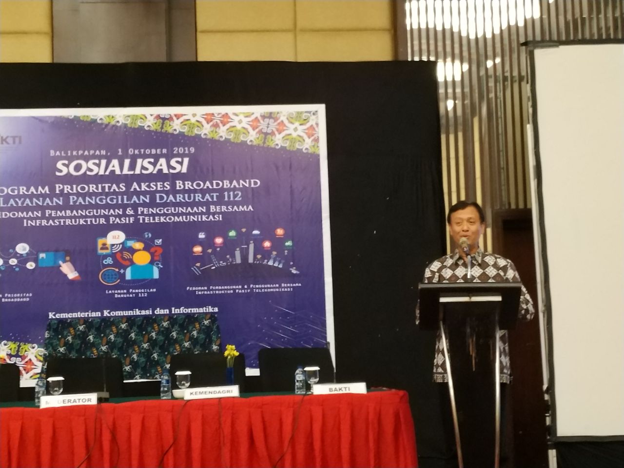BALIKPAPAN, Inibalikpapan.com — Kementerian Komunikasi dan Informatika (Kemenkominfo) sosialisasikan Program Prioritas Akses Broadband Layanan Panggilan Darurat 112 kepada unsur pemerintahan kabupaten kota se Kalimantan yang berpusat di Novotel Balikpapan, Selasa (01/10/2019).