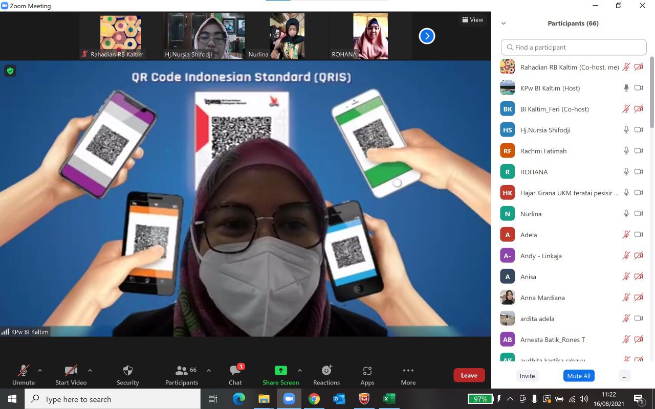 Dipaparkan langsung oleh Manager Fungsi Implementasi Kebijakan Sistem Pembayaran Bank Indonesia Kaltim, Feri Hermawan dan Adi Wijaya, dari LinkAja. Sosialisasi QRIS ini dilaksanakan secara virtual dan diikuti oleh 100 UMKM peserta pameran GBBI. Nantinya seluruh transaksi yang terlaksana pada pameran GBBI akan dilakukan secara non tunai, konsumen cukup melakukan scan pada barcode QRIS yang dimiliki masing-masing merchant.