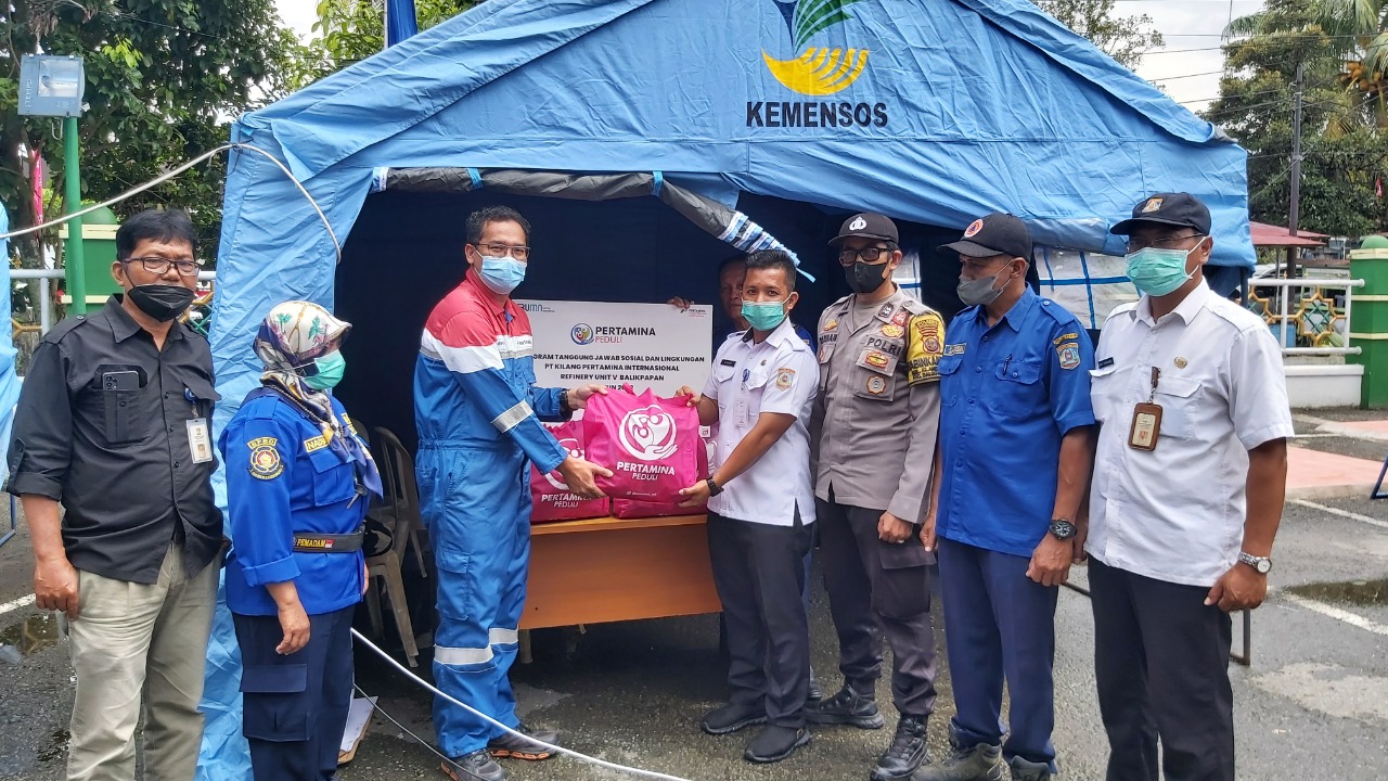 Sebagai bentuk kepedulian, Pertamina melalui PT Kilang Pertamina Internasional (KPI) Unit Balikpapan menyalurkan bantuan 35 paket sembako di Posko Pengungsi yang berlokasi di halaman belakang masjid Agung At Taqwa. Rabu, (10/08/2022). Paket sembako yang disalurkan berisikan beras, gula, mie instant, minyak, tepung, ikan kaleng dan teh.