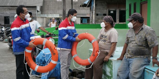 BALIKPAPAN, Inibalikpapan.com,– Berangkat dari keprihatinan nelayan saat melaut untuk mencari ikan menggunakan peralatan seadanya, PT Kilang Pertamina Balikpapan dalam rangkaian bulan bakti Keselamatan dan Kesehatan Kerja (K3) membagikan pelampung dan Kotak Pertolongan Pertama Pada Kecelakaan (P3K) kepada perwakilan nelayan Balikpapan.