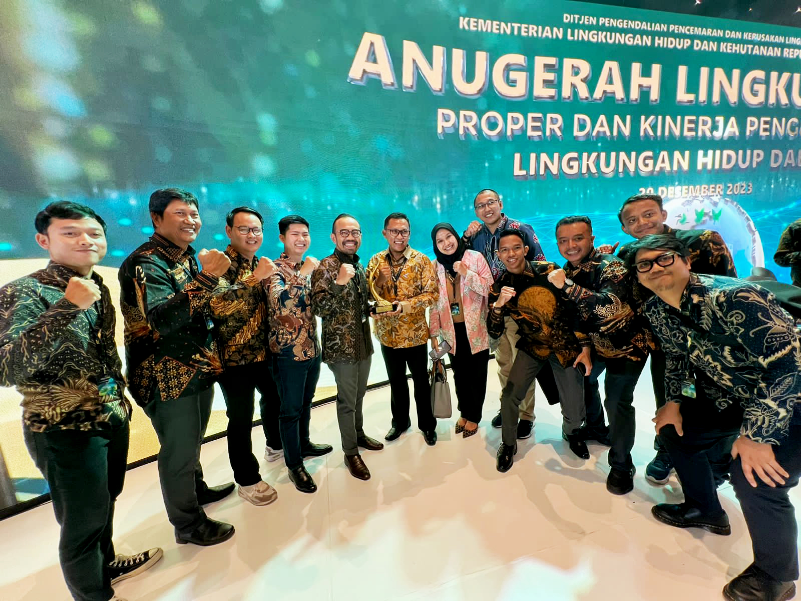Penganugerahan PROPER Emas dan Green Leadership ini diberikan langsung oleh Wakil Presiden KH Ma’ruf Amin didampingi wakil Menteri KLHK Alue Dohong dan Ketua Dewan Pertimbangan Proper KLHK Prof. Sudharto di Bidakara Hotel, Jakarta, Rabu (20/12/2023).