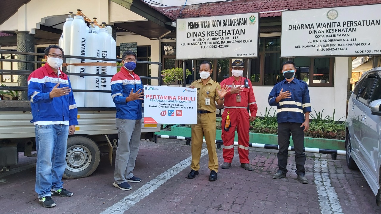 BALIKPAPAN, Inibalikpapan.com — Dalam upaya membantu ketersedian dan kebutuhan tabung oksigen di tengah peningkatan angka pasien Covid-19 di Balikpapan, Pertamina RU Balikpapan membantu 20 tabung oksigen.