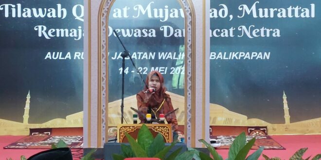 BALIKPAPAN, Inibalikpapan.com- Perhelatan MTQ KE 44 tingkat Provinsi Kaltim juga diikuti peserta cacat netra. Sebanyak 10 peserta ikut serta dalam cabang Tilawah yang digelar di rumah Jabatan Wali Kota Balikpapan, Jumat (19/5/2023) siang.