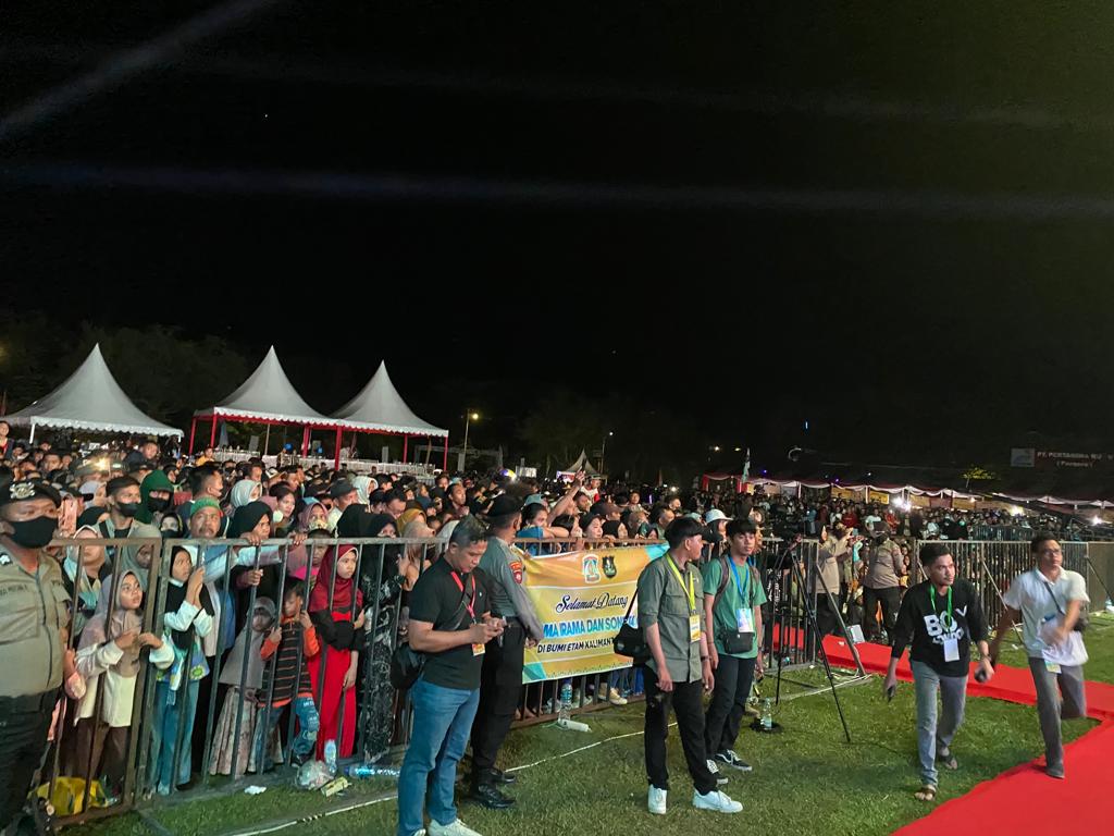 Sabtu (11/02/2023) malam, sejumlah artis dangdut popular dihadirkan untuk memberikan hiburan. Mulai dari Iyeth Bustami, Elvy Sukaesih hingga Rhoma Irama dengan grup Sonetanya.