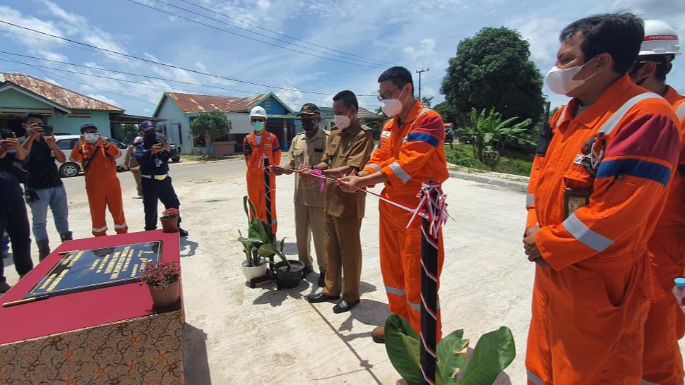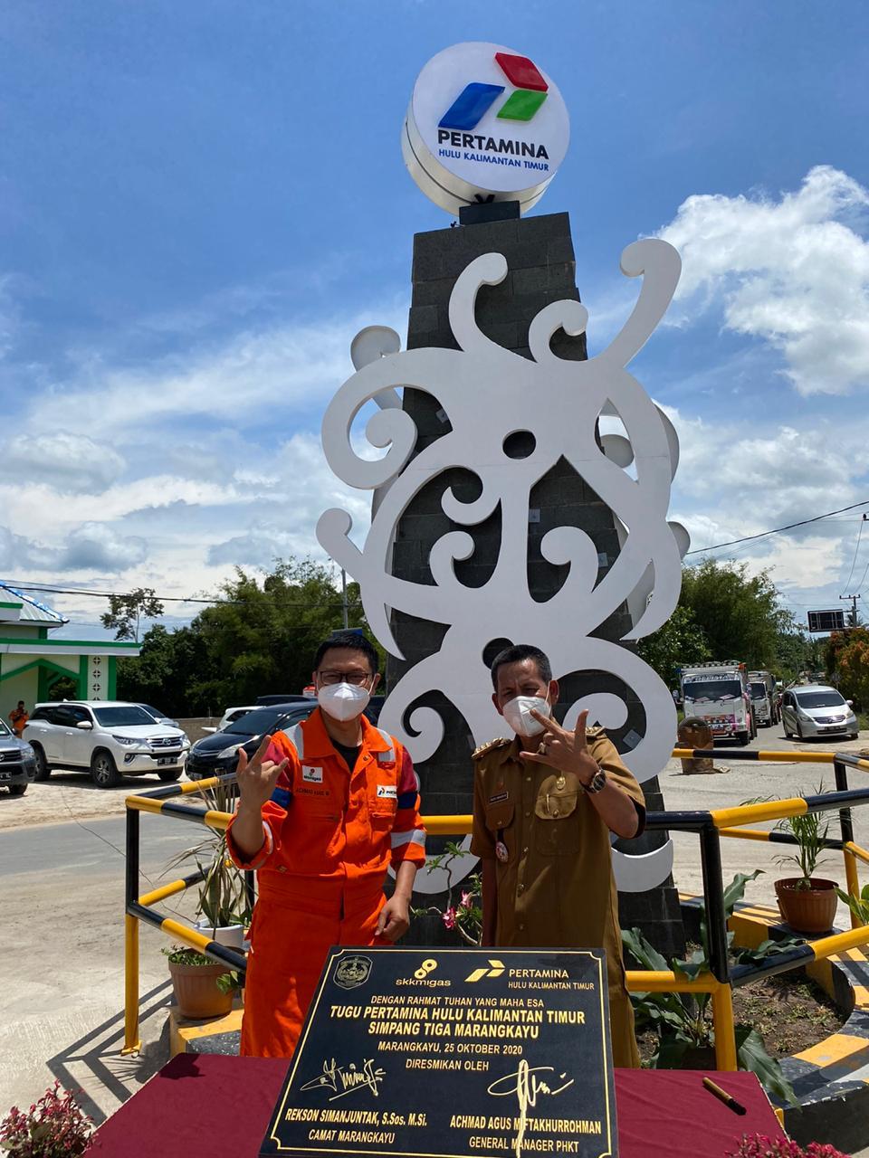 MARANGKAYU, Inibalikpapan.com – Pertamina Hulu Kalimantan Timur (PHKT) dengan dukungan Pertamina Hulu Indonesia (PHI) maupun Pertamina membangun Tugu Simpang Tiga Marangkayu dan perbaikan jalan di Desa Sebuntal Kecamatan Marangkayu, Kabupaten Kutai Kertanegara.