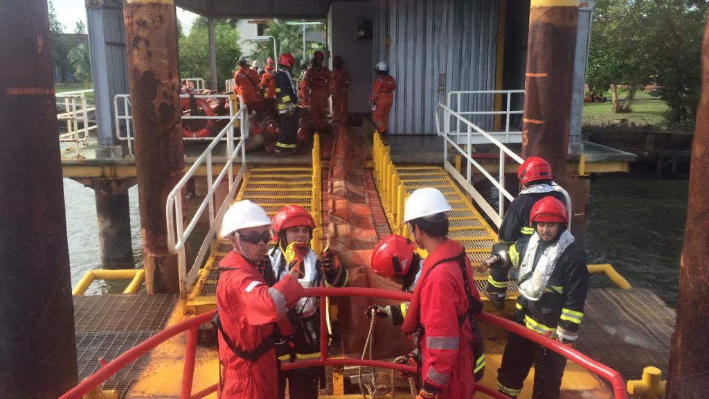 Dalam insiden itu terdapat 1 (satu) korban terjatuh ke dalam air, serta terjadi tumpahan kondensat. Selain berlatih menangani korban, dalam latihan itu para petugas membersihkan dan menghalau tumpahan kondensat yang bergerak menuju ke area sensitive dan mengarah ke tambak-tambak milik masyarakat.