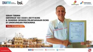 JAKARTA, Inibalikpapan.com – PT Pertamina Hulu Mahakam (PHM) menerima sertifikasi ISO 22301:2019 Sistem Manajemen Keberlanjutan Bisnis (Business Continuity Management System/BCMS) dari PT British Standard Institution (BSI) Group Indonesia.