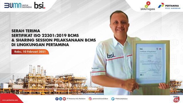 General Manager PHM, Agus Amperianto, mengatakan ISO 22301:2019 BCMS ini adalah versi terbaru yang berlaku di WK Mahakam. Pada 2015 WK Mahakam memperoleh sertifikasi pertama ISO 22301:2012 untuk 4 lokasi kerja. Kemudian pada tahun 2018, sertifikasi itu dikukuhkan atas nama PT Pertamina Hulu Mahakam.