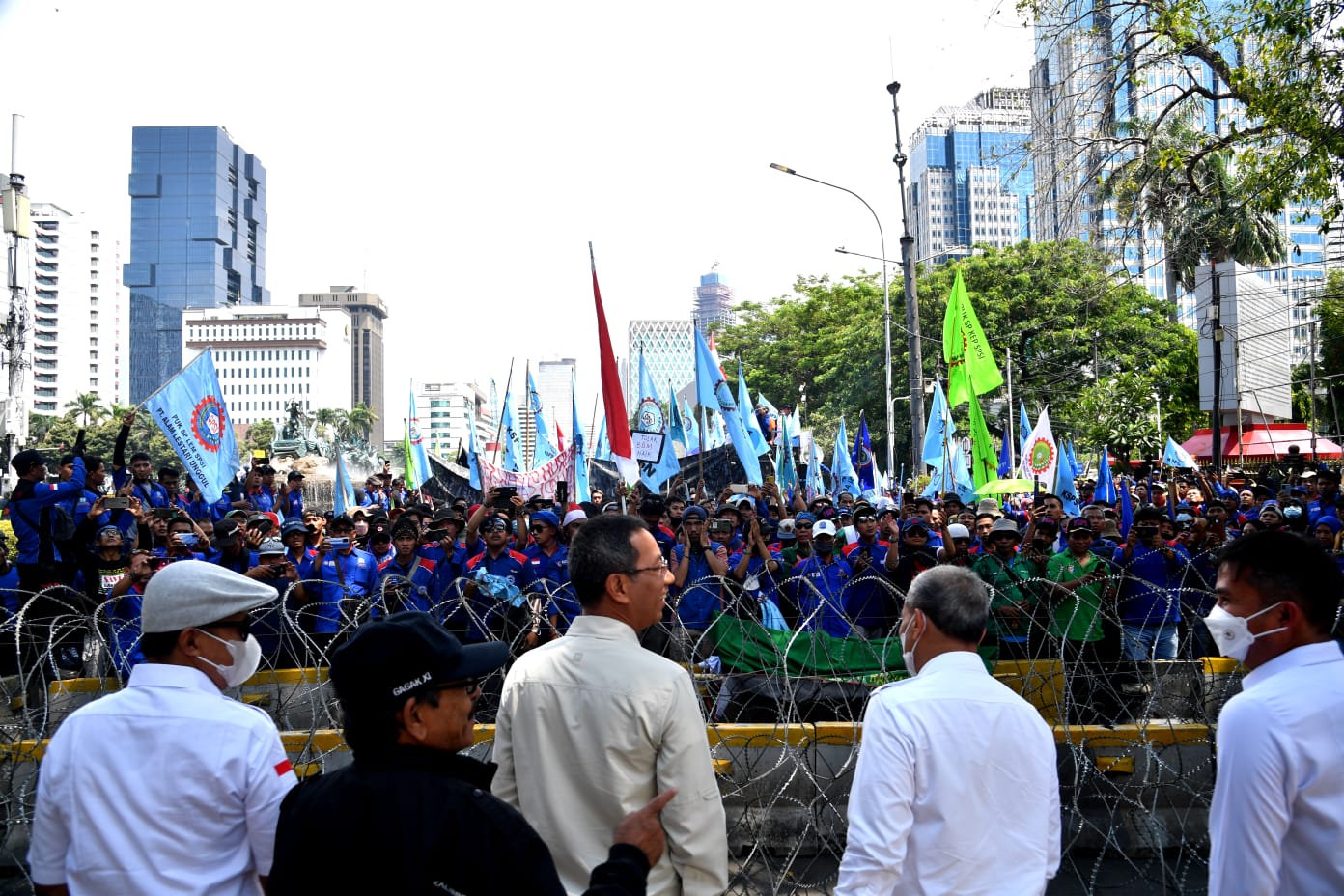 BALIKPAPAN, Inibalikpapan.com – Kepala Sekretariat Presiden (Kasetpres) Heru Budi Hartono menemui secara langsung massa buruh dari Konfederasi Serikat Pekerja Seluruh Indonesia (KSPSI) yang melakukan unjuk rasa terkait kenaikan harga bahan bakar minyak (BBM) di kawasan Tugu Arjuna Widjaja (Patung Kuda), Jakarta, pada Senin, 12 September 2022.