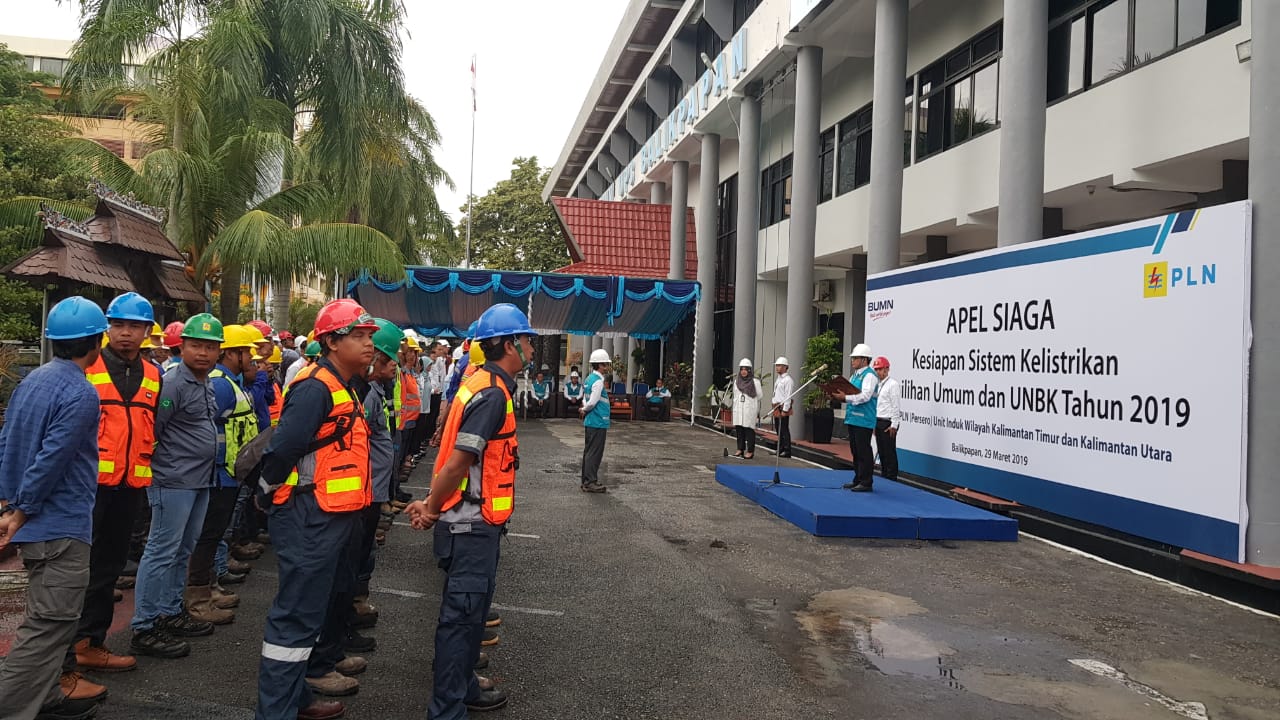 BALIKPAPAN, Inibalikpapan.com – PLN Kaltimra menggelar apel siaga guna menyambut persiapan pelaksanaan Pemilihan Umum dan Ujian Nasional Berbasis Komputer tahun 2019 April mendatang. Apel siaga diikuti jajaran manajemen PLN Kaltimra, Unit Pelaksana Pelayanan Pelanggan Balikpapan (UP3) di kantor PLN Bekapai, Jumat pagi (29/3/2019).
