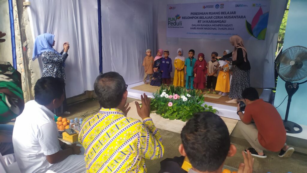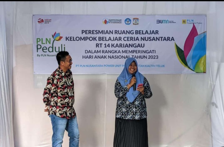 “Perusahaan memberikan amanah untuk meneruskan, membantu program-program masyarakat yang memang bagian dari komitmen kami agar ikut mencerdaskan kehidupan bangsa dan negara,” terang Asisten Manajer Administrasi Ardhan Pujiarto mewakili Manajer Unit PT PLN Nusantara Power UP Kaltim Teluk Syarief Andrian saat memberi sambutan pada acara peresmian ruang belajar KB Ceria Nusantara, Sabtu (22/7/2023).