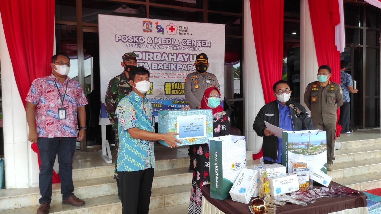 BALIKPAPAN, Inibalikpapan.com— PLN BJB menyerahkan bantuan sebanyak 150 kota masker medis dan 150 masker kain kepada satgas covid kota Balikpapan.