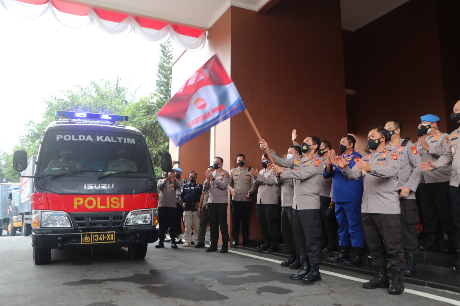 “Bansos bagi masyarakat yang terdampak covid-19, melakukan secara serentak diseluruh jajaran Polda Kaltim,”