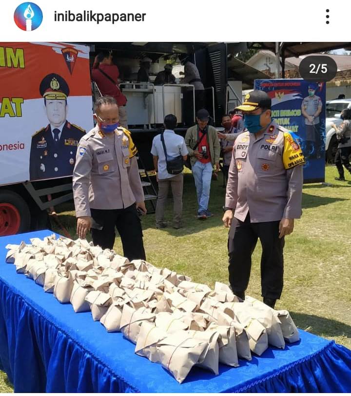 Untuk hari pertama program dapur umum tersebut, ratusan warga kurang mampu diberikan nasi bukungkus gratis. Menggunakan kendaraan Brimob yang ditempatkan di area parkir PT Patra, RT 40 Gunung Bahagia.