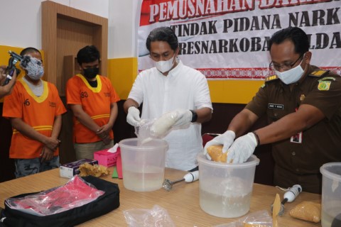 Narkoba yang dimusnahkan dengan cara mencampurkannya ke dalam larutan air di dalam wadah yang telah disediakan. Kemudian, dibelender sampai rata dan dibuang ke dalam kamar mandi.