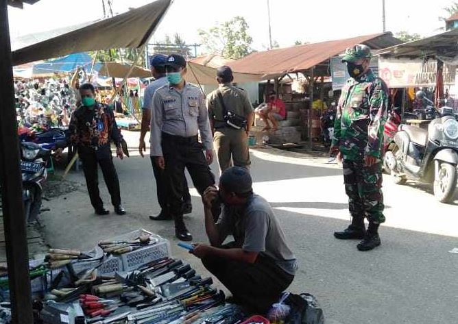 PENAJAM- Tim gabungan Polsek Waru, yang terdiri dari,Koramil 02 Waru, Kecamatan Waru dan UPT Puskesmas Kecamatan Waru, gelar Operasi Yustisi peningkatan disiplin dan penegakkan hukum protokol kesehatan Covid – 19 di Wilayah Kecamatan Waru, Kabupaten Penajam Paser Utara, pagi ini Jumat (23/10/2020).